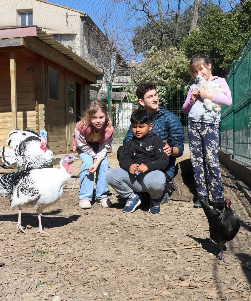 Mercredis de mars 2026 Mercredis de mars 2026 Galerie photos Centre de loisirs Les petites bêtes du compost attirent le dindon Badigeon d'argile pour protéger les arbres La fée du printemps captive les enfants de ses chants et de ses histoires Balade des ânes Préparation d'une succulente brioche Préparation d'une succulente brioche La fée du printemps captive les enfants et nos invitées de la résidence séniors Nohée avec ses chants et ses histoires Récupérons de la paille pour protéger nos plantations Apprenons à manipuler une pelle pour récupérer de la paille Cohésion et coordination sont essentiels pour guider la brigade anti-limaces Entretien et découverte du compost À la recherche des petites bêtes du compost pour distribuer aux volailles Après une belle récolte au potager, préparons des crumbles salés pour le repas Création de masques printaniers avec les éléments naturels trouvés au sol Création d'un jeu du morpion avec des éléments naturels Fabrication des pions et du plateau du jeu de morpion Nettoyage de l'enclos des moutons Créons des nichoirs à abeilles solitaires Nourrissage des cochons Apportons de l'herbe fraîche aux lapins Est-ce que le plantain fera sortir le cochon d'Inde de sa cachette ? Préparons des onigiris avec les légumes du potager Création d'un jeu de plateau avec des coquilles d'escargots Les petits clowns plantent les légumes pour cet été La légende raconte que des œufs d'oies auraient été aperçus dans le compost Récolte d'herbe fraîche pour les animaux Grande récolte de plumes sur le domaine Zoom sur les petites bêtes pour exposer à la yourte Nettoyage du poulailler et nourrissage des volailles Nettoyage de la mare et nourrissage des canards